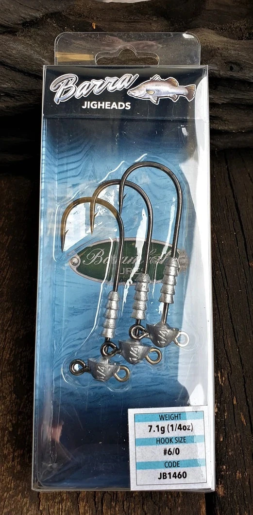 Built tough to handle Barramundi! The range of Barra Jigheads are built on forged 4X strong black nickel hooks. They have an ultra sharp hook and oversized barb for optimum penetration and holding power. A unique feature is the assist eyelet to attach a treble hook or assist hooks for increased hook up rates. The head is engraved with both the weight and hook size for easy identification. Rigging of all types of plastics is easy and secure with the ultimate keeper.