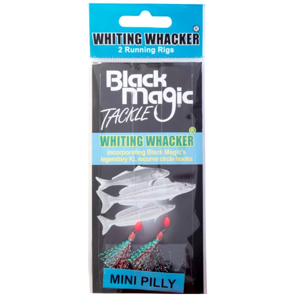 Utilising Black Magic’s legendary KL 01 Japanese recurve hooks, these Black Magic Whiting Whacker Rigs feature two hook paternoster “flasher” rig utilising Japanese hooks and 15lb fluorocarbon leader, plus lumo beads above each fly for added attraction!