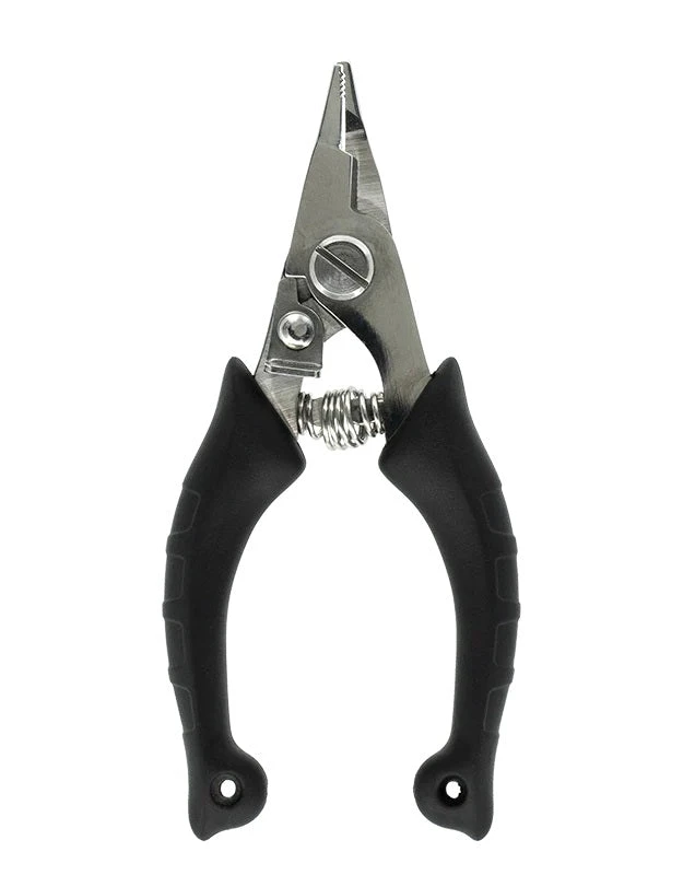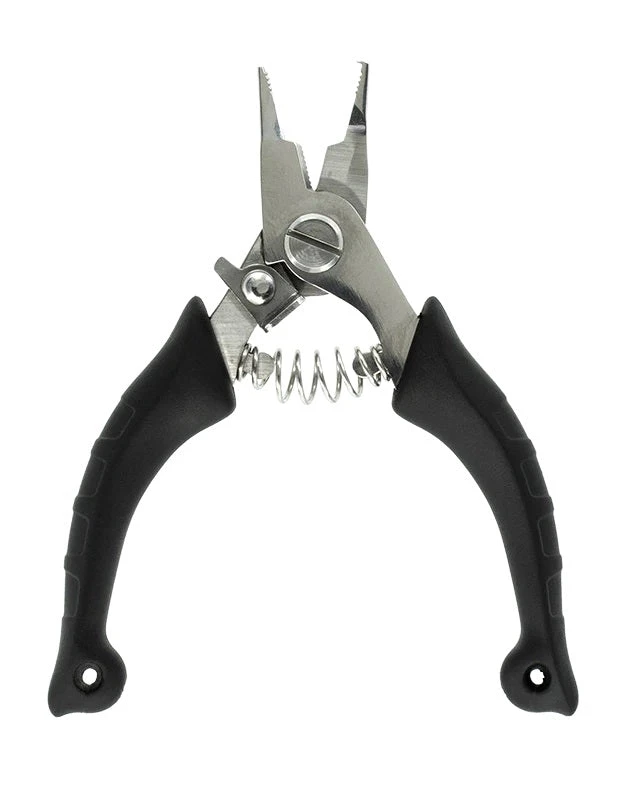 The ultra-fine tip is capable of opening #00 – 2 sized split rings. The pliers also feature micro-serrated braided line cutters above the hinge, a locking pin for ease of storage, a lanyard connecter to keep handy at all times and an ergonomic designed grip that will help in wet conditions and feel comfortable in the hand.