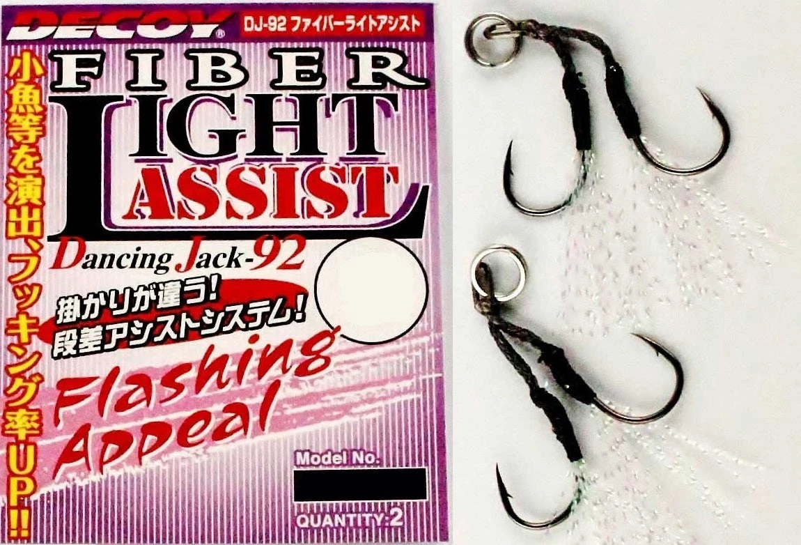 The DJ 92 is equipped with reflective fibres which will increase the attraction of the lure in certain situations and in particular in the fishing cases in weather shone upon in the low and medium depths. The saltwater assist hooks is ideal for Micro Jigs, Metal Spinners and more.