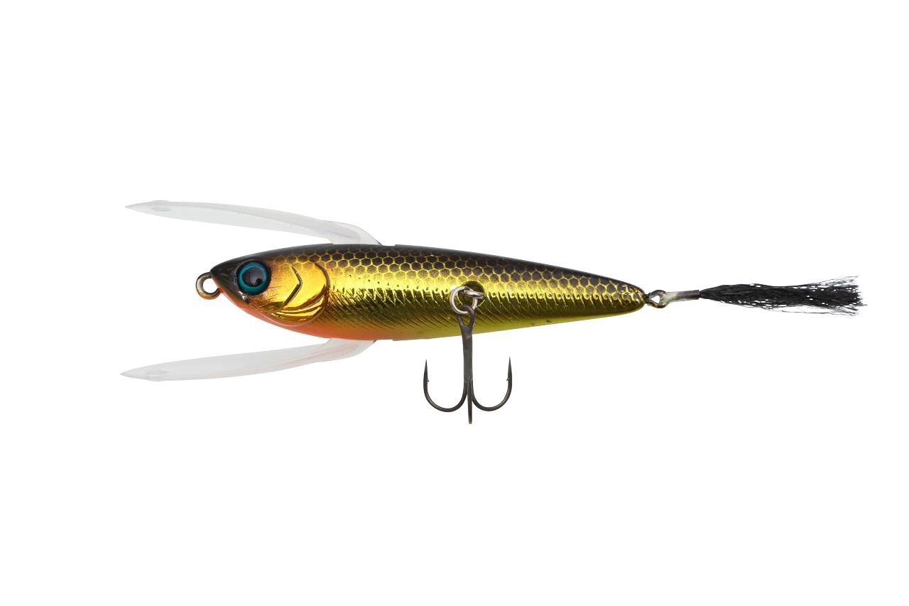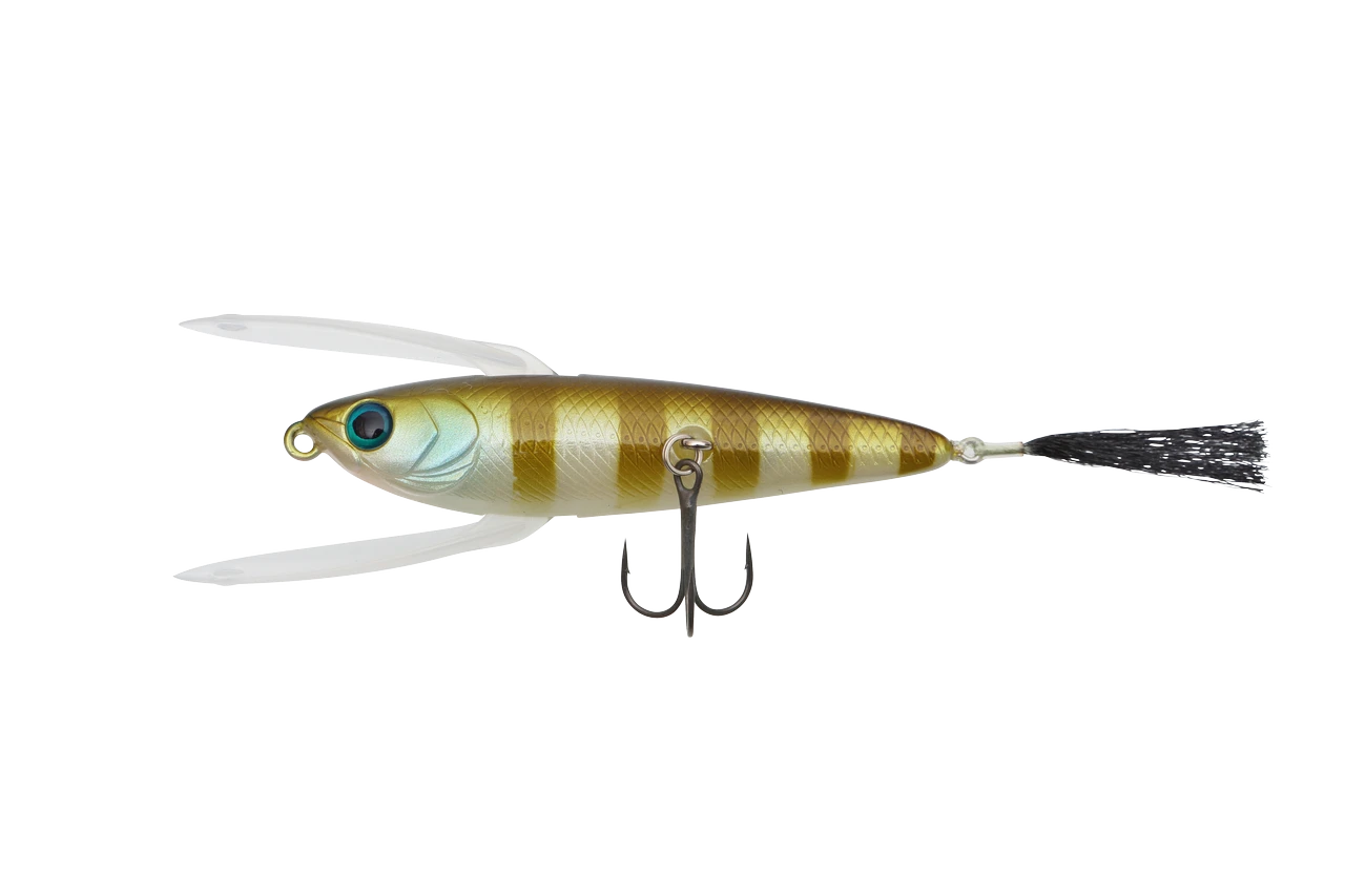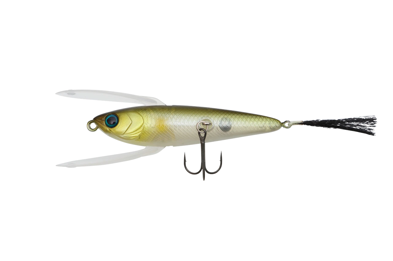 A bait-fish-like small top water plug that can be fished with a slow shake action! A weakened baitfish is a wing to give a slow action stifling on the surface of the water, but an image that several baits are intertwined rather than a way of capturing wings! Not only shake-induced postcard action, but also windy butterfly action is possible.