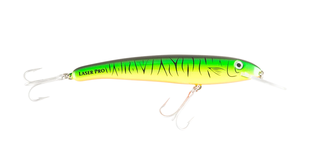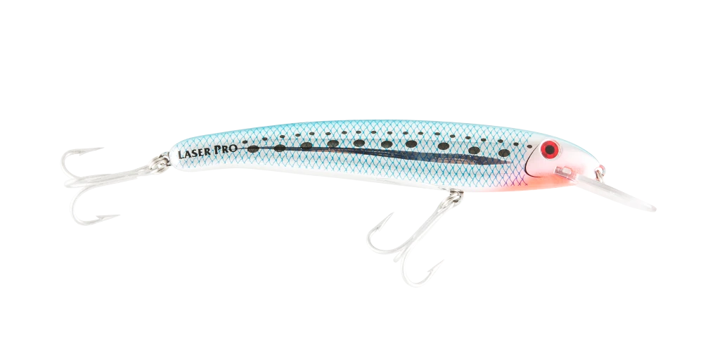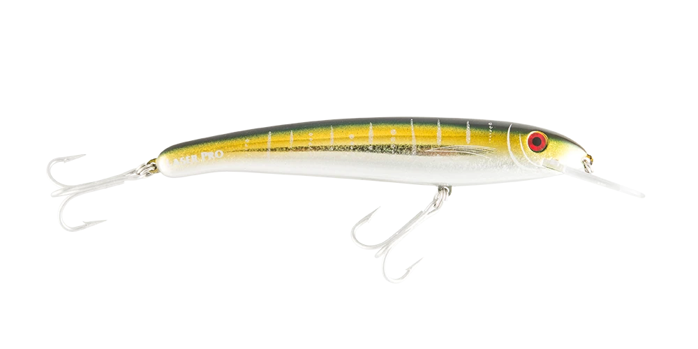 Remember, always troll your lures at different distances from the boat. Not only does this cover more area, it also avoids tangles when turning the boat, as the closer lure will pass under the further lure during the turn. The Laser Pro 190XDD (Crazy Deep) model has a diving depth of 6m+ to 11 knots.