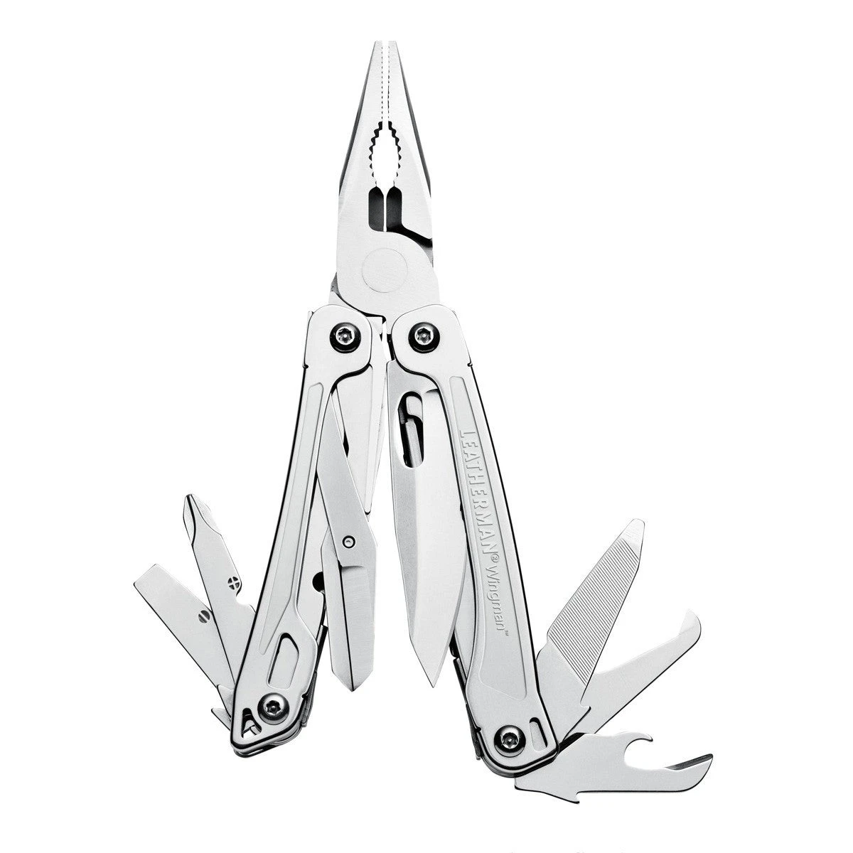 The Leatherman Wingman is just that: your go-to tool for projects around the house, on the job, or at the campsite. A great, lightweight, pocket-sized, stainless steel tool; the Wingman features an outside-accessible, one-hand opening blade and newly-designed spring-action jaws. With plenty of handy tools, and backed by a team of designers, assemblers, and manufacturing crew from Portland, Oregon, this is one amazing value. Covered by the Leatherman 25-year warranty.