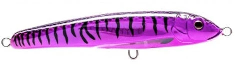The 115 Riptide has had the body shape “fattened” up to create the ultimate surface walk the dog style lure and to create a lure that will nearly turn 180 degrees on itself on the surface when twitched. The internal rattle combined with the seductive walk the dog action when twitched across the surface make this lure deadly on species like barramundi, Murray Cod, jacks, queenfish, kingfish and a variety of reef species.