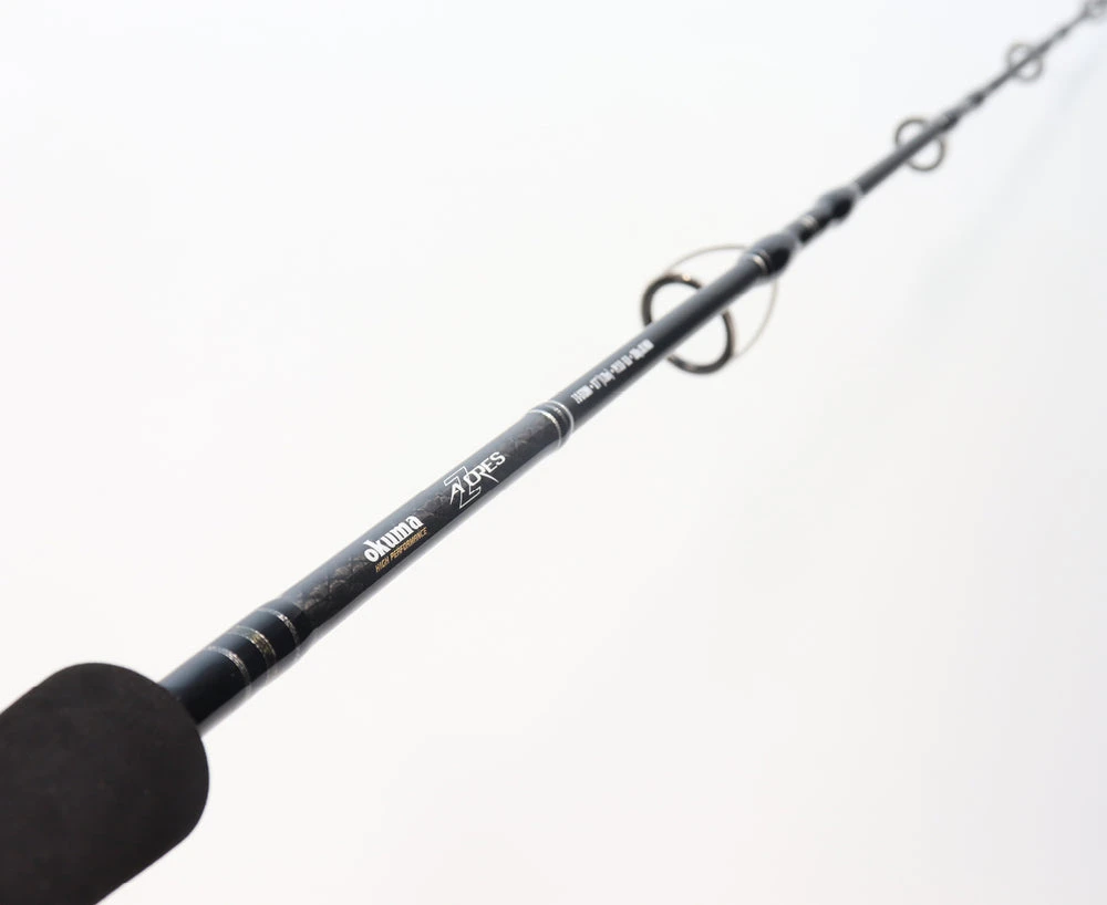 Okuma Azores jigging rods feature slim high modulus carbon blank with power carbon wrap, split handle ferrule connection, for natural bending and easy transportation.