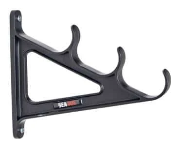 This set of Sea Dog rod racks when set up will hold a total of three rods. The sea dog rod racks allows you to securely store any rod type with the reel still on. This rack maximises the capacity of your storage area and it is great for over doorways. It is a durable one piece design that fixes easily to the wall. And very importantly you can mount your sea dog rod racks high and away from curious hands.