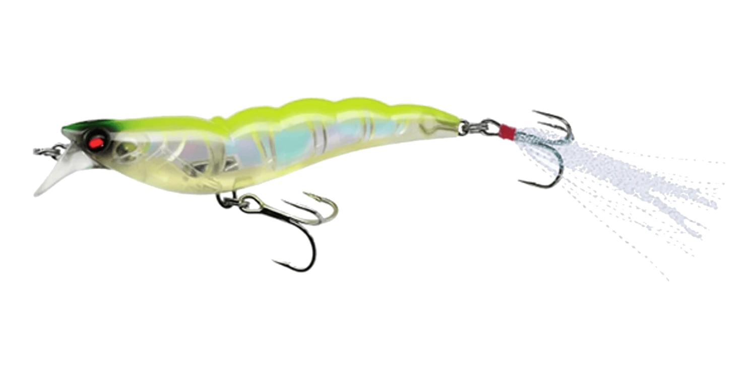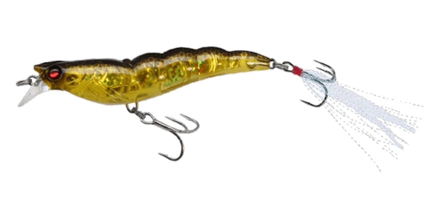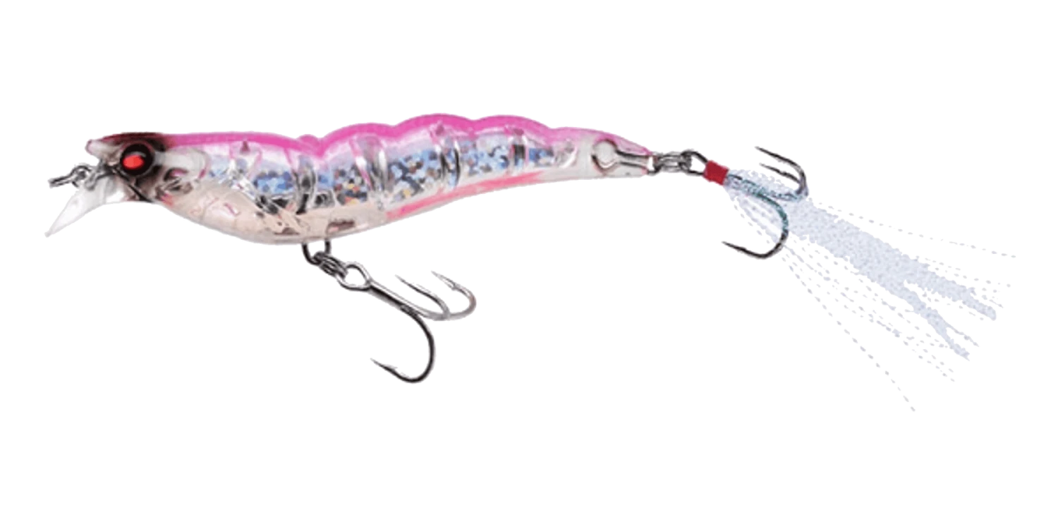 Features a super tight wiggling action and can be fished with a fast or slow darting motion. Cast, retrieve, twitch, and pause after each twitch; the shrimp slowly sinks, inducing strikes on the fall.